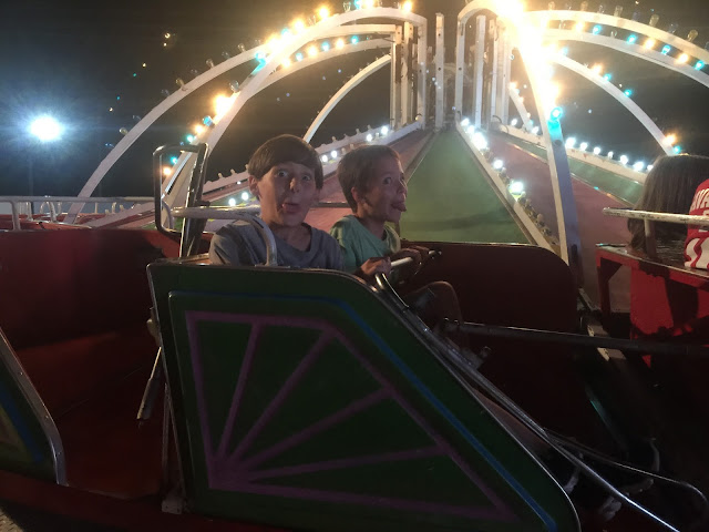 We had a busy weekend though. Harrison and Cameron spent the night with us Friday night. They talked me into taking them to a carnival on the parking lot of the Furniture Market.
